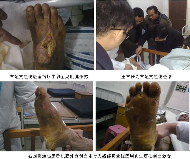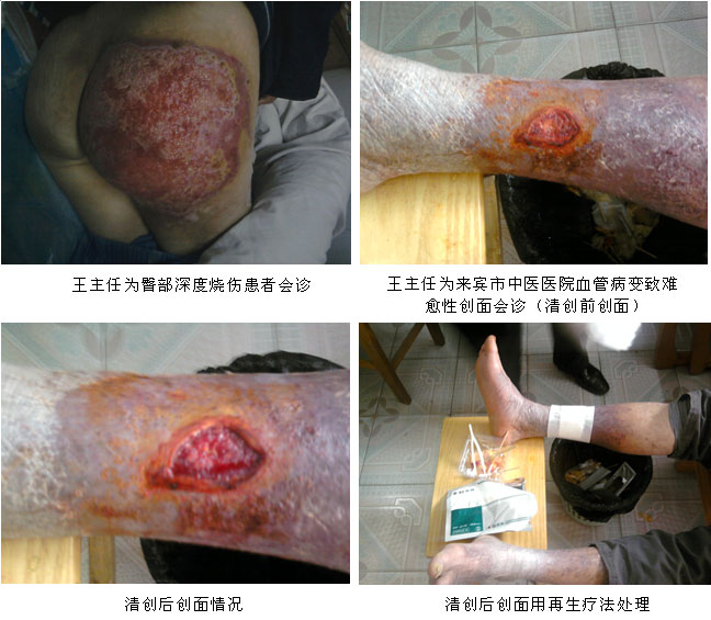 另外,在廣西與各醫(yī)院技術(shù)交流期間,王主任還于2011年1月16日應(yīng)來賓市中醫(yī)醫(yī)院周國榮院長(zhǎng)的邀請(qǐng),到該醫(yī)院為一例下肢血管病變?cè)斐傻囊焕y愈性潰瘍創(chuàng)面患者進(jìn)行了會(huì)診和指導(dǎo)。