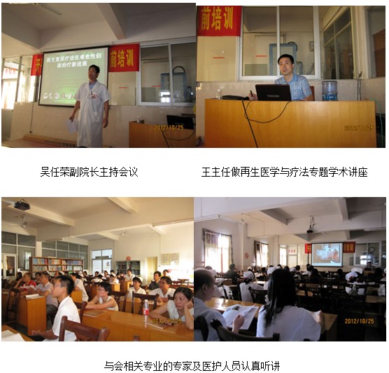 為了更好、更規(guī)范地將再生技術(shù)應用到臨床造?;颊撸龠M再生技術(shù)的多科室應用,2012年10月25日下午,   該院邀請了中國中西醫(yī)結(jié)合學會燒傷專業(yè)委員會常委兼秘書、《中國燒傷創(chuàng)瘍雜志》副總編輯、北京美寶燒傷創(chuàng)瘍研究所副所長、臨床研究部主任王洪生研究員做學術(shù)講座。王主任以“再生復原療法在難愈性創(chuàng)瘍創(chuàng)面治療新進展”為題進行了專題學術(shù)講座。會議由該院業(yè)務院長吳任榮主持,各相關(guān)臨床科室燒傷科、外科、骨科、手外科,婦產(chǎn)科等醫(yī)護人員50余人參會學習。在學術(shù)講座中,王主任結(jié)合臨床圖片對各種難愈性創(chuàng)傷、潰瘍創(chuàng)面的規(guī)范處理方法與技巧做了詳細講解。講座結(jié)束后王主任應邀于當日晚餐時與該醫(yī)院院領(lǐng)導及外科主任等做了進一步交流,王主任對他們提出的在臨床中常遇到的一些治療技術(shù)難題進行了詳細解答。