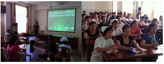 2012年6月1日下午,經(jīng)茂名市衛(wèi)生局批準,應(yīng)該醫(yī)院醫(yī)務(wù)科盧科長邀請,中國中西醫(yī)結(jié)合學(xué)會燒傷專業(yè)委員會常委兼秘書,北京美寶燒傷創(chuàng)瘍研究所副所長、第二臨床研究部主任,《中國燒傷創(chuàng)瘍雜志》副總編輯王洪生研究員到該醫(yī)院做“再生復(fù)原療法在難愈性創(chuàng)面治療新進展”臨床專題學(xué)術(shù)講座,參會人員有來自信宜市各級醫(yī)療單位醫(yī)護代表近100人,在學(xué)術(shù)講座中,王主任首先向與會的專家介紹了著名生命科學(xué)家、醫(yī)學(xué)家、人體再生復(fù)原科學(xué)的創(chuàng)立者、再生復(fù)原療法的發(fā)明人徐榮祥教授近年來在再生醫(yī)學(xué)領(lǐng)域所取得的重大實驗及臨床研究成果,而后王主任結(jié)合了大量的臨床病例圖片及錄像資料,就再生復(fù)原療法在難愈性創(chuàng)瘍創(chuàng)面治療上的一種新方法,對不同深度的燒傷創(chuàng)面及各類難愈性創(chuàng)傷、潰瘍創(chuàng)面的規(guī)范化處理方法與技巧、注意事項等進行了細致地講解,并強調(diào)創(chuàng)面處理要大膽清創(chuàng)、減壓、去除壞死組織,并保持創(chuàng)面生理的濕潤環(huán)境,實現(xiàn)創(chuàng)面的再生復(fù)原,并建議對病人深達真皮層以下愈合后創(chuàng)面應(yīng)進行防疤處理治療。