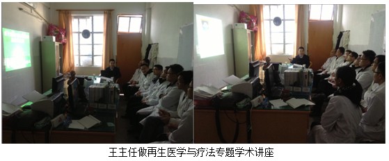 學(xué)術(shù)講座于當(dāng)日下午下午4:00在該醫(yī)院的外科主任辦公室召開。該醫(yī)院的骨外科何平主任、普外科劉主任及其醫(yī)院各外科系統(tǒng)負責(zé)人及醫(yī)護人員10余人參加了講座會議。會中,王主任結(jié)合了大量的臨床病例圖片,主要針對燒傷、糖尿病足、褥瘡等各類難愈性創(chuàng)傷、潰瘍創(chuàng)面的規(guī)范化處理方法與技巧、注意事項等進行了細致地講解。會議持續(xù)到下午近六點,何主任表示再生療法在臨床上相對于他們來說,是一個全新的治療方法,他們都感到非常的信服,希望王主任以后再臨床上能多多的指導(dǎo),以更好的造福于患者。