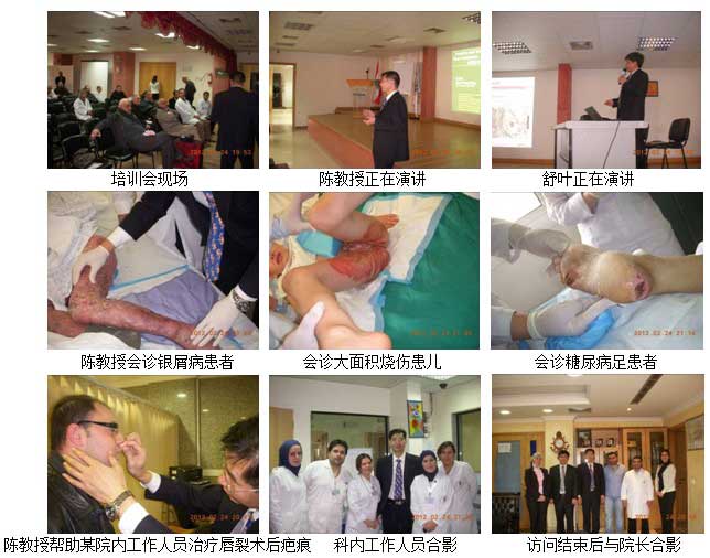 3. 2月24日9點(diǎn),受到DAR AL-AMAL UNIVERSITY HOSPITAL醫(yī)院的邀請(qǐng),美寶團(tuán)隊(duì)趕到距離貝魯特2個(gè)小時(shí)車(chē)程的貝爾貝克市進(jìn)行產(chǎn)品推廣。該醫(yī)院是一所私立大學(xué)附屬醫(yī)院。在為20余名該院各科高年資醫(yī)師做完再生醫(yī)學(xué)技術(shù)和產(chǎn)品介紹后,陳永翀教授在整形科主任的陪同下為三例患者進(jìn)行了會(huì)診。第一位是老年銀屑病患者并發(fā)潰瘍伴全身多器官功能障礙;第二位是一個(gè)8歲學(xué)齡期兒童,三度大面積燒傷患者;第三位是老年糖尿病潰瘍患者。在看完病例之后,陳教授給予一一解答,再生醫(yī)療技術(shù)可以解決上述全部問(wèn)題,只要進(jìn)行規(guī)范的創(chuàng)面處理并進(jìn)行合理的系統(tǒng)治療,所有病人的創(chuàng)面都可以最快速度的愈合。他同時(shí)建議銀屑病患者脫角質(zhì)創(chuàng)面可以嘗試使用美寶疤痕平軟膏,將會(huì)得到意想不到的效果;大面積燒傷患兒要及時(shí)清除液化壞死組織;糖尿病患者要積極控制血糖水平。
