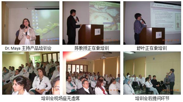 2. 2月23日早上10點(diǎn)半,美寶推廣團(tuán)隊(duì)再次來(lái)到賽達(dá)市,為當(dāng)?shù)匾患宜搅⒋髮W(xué)附屬醫(yī)院Hammoud Hospital的醫(yī)務(wù)人員進(jìn)行專(zhuān)門(mén)的疤痕軟膏培訓(xùn)。培訓(xùn)會(huì)由Dr. Maya主持,Dr. Maya是藥學(xué)的博士,現(xiàn)在負(fù)責(zé)美寶所有產(chǎn)品在黎巴嫩的經(jīng)營(yíng)工作。醫(yī)院共計(jì)有60余名醫(yī)生、藥師、護(hù)士參加此次培訓(xùn)會(huì)。當(dāng)醫(yī)生們看到再生醫(yī)療技術(shù)及其配套產(chǎn)品在抗疤領(lǐng)域所取得驕人成績(jī)時(shí),詳細(xì)地詢(xún)問(wèn)我們的產(chǎn)品和現(xiàn)在主流的產(chǎn)品硅膠貼有何不同等相關(guān)問(wèn)題。負(fù)責(zé)產(chǎn)品推廣的舒葉解釋說(shuō),硅膠貼和疤痕平在抗疤的原理上有一小部分是相似的,那就是兩種產(chǎn)品都能保持創(chuàng)面的濕潤(rùn)。但是硅膠貼使用合成的材料來(lái)保持創(chuàng)面濕潤(rùn),而疤痕平卻是用獨(dú)特的由天然成分蜂蠟和麻油組成的框架劑型來(lái)保持接近于正常皮膚水分丟失來(lái)保持創(chuàng)面濕潤(rùn),這是硅膠貼產(chǎn)品所不能比擬的;除此,疤痕軟膏中各種物質(zhì)能提供給細(xì)胞各種必需的營(yíng)養(yǎng)成分,調(diào)節(jié)膠原蛋白正常生長(zhǎng),以此來(lái)達(dá)到預(yù)防和治療疤痕的效果。