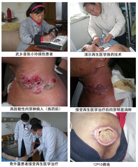 趙瑞慶教授還在各地區(qū)醫(yī)院進(jìn)行了疑難病癥的查訪活動(dòng),針對(duì)性地會(huì)診了傷口骨外露、傷口感染、嚴(yán)重壓創(chuàng)患者、皮膚高致敏性肉芽腫的患者,解決了應(yīng)用再生醫(yī)學(xué)技術(shù)與負(fù)壓技術(shù)結(jié)合治療皮膚缺損等諸多臨床問(wèn)題,趙教授還親自演示了再生醫(yī)學(xué)技術(shù)規(guī)范的換藥程序。各地醫(yī)務(wù)人員對(duì)趙教授傳經(jīng)送寶的隨訪活動(dòng)深受感動(dòng)和鼓舞,并表示要在今后的臨床工作中將再生醫(yī)學(xué)技術(shù)在晉南、晉東南地區(qū)開(kāi)花結(jié)果。