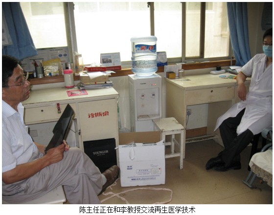 陳全喜同骨科李教授及孫副教授一塊會診病人?;颊?7歲,2011年12月4號,因車禍造成右下肢脛腓骨粉碎性骨折。從臨床看,脛骨外漏長12cm,寬6.3cm缺損。骨表面色黃,骨邊緣暗黃色,骨髓缺損(脛骨下端直踝關(guān)節(jié),未發(fā)現(xiàn)有骨髓)。骨缺損處呈不規(guī)則形,固定鋼板,固定針暴露,周圍皮膚暗黑,邊緣齊純。李教授說:“我們已經(jīng)做過六次手術(shù),其他部位都長好了,就是這個部位長不住?!标愔魅握f:“臨床最多見的是粉碎性骨折,尤其是脛前骨難以愈合。因為肌肉少血運(yùn)差,再加上有其他原因,這個部位是骨科醫(yī)生棘手的技術(shù)問題。這種創(chuàng)面需用一種培養(yǎng)細(xì)胞的物質(zhì)對對其進(jìn)行治療,能起到一定的療效。美寶皮膚再生技術(shù)目前是國際上較前沿的高科技技術(shù),是培養(yǎng)創(chuàng)面局部缺損的細(xì)胞生長增殖,激活潛藏骨髓、骨皮膚的潛能細(xì)胞。由潛能細(xì)胞轉(zhuǎn)化成體細(xì)胞,由體細(xì)胞轉(zhuǎn)化為干細(xì)胞,修復(fù)骨髓,骨缺損,皮膚組織。最終完成創(chuàng)面修復(fù)任務(wù)。經(jīng)過一段時間的治療,效果就會出現(xiàn)。”