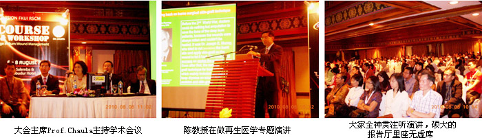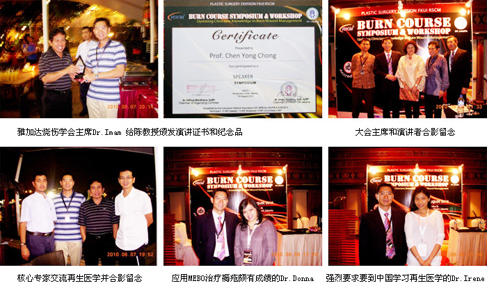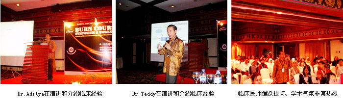 另外,在這次會(huì)議期間,除了來自中國的燒傷再生醫(yī)學(xué)專家陳教授做了燒傷再生醫(yī)學(xué)專題演講外,來自雅加達(dá)Cipto醫(yī)院燒傷整形科的Dr. Aditya Wardhana以“Topical Dressing for Burn”為題介紹了自己在燒傷治療方面的臨床經(jīng)驗(yàn)和體會(huì),特別向大家展示了他2008年到四川進(jìn)修、學(xué)習(xí)燒傷再生醫(yī)學(xué)技術(shù)的親身經(jīng)歷,以及回國后應(yīng)用燒傷再生療法成功救治的40多例燒傷患者所取得的優(yōu)異效果,很受大家的青睞;還有,來自Cipto 醫(yī)院燒傷整形科的Dr. Teddy在他的發(fā)言中也介紹了自己自2006年起,應(yīng)用燒傷再生醫(yī)學(xué)治療頭面部、雙手、上肢及大腿深度燒傷患者的臨床經(jīng)驗(yàn),向大家展示了多例成功病例,從實(shí)際應(yīng)用的角度證明了燒傷再生醫(yī)學(xué)的神奇性和優(yōu)越性。這次涉及燒傷再生醫(yī)學(xué)的、有國外專家和國內(nèi)專家配合的演講成為大家關(guān)注的焦點(diǎn)和討論的熱題,會(huì)場氣氛非常熱烈,再生醫(yī)學(xué)演講把這次大會(huì)的學(xué)術(shù)氛圍推向了高潮!