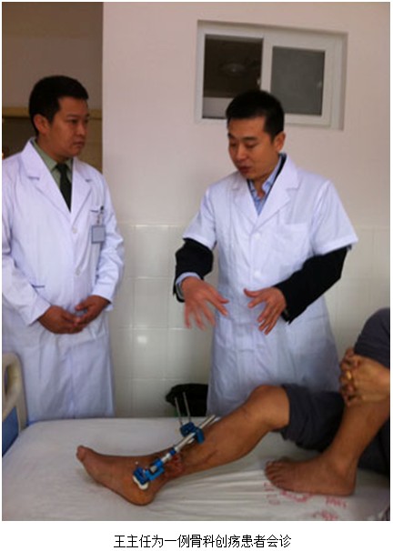 2012年11月16日上午,王主任應(yīng)邀再次到該醫(yī)院外科,在該科韓新明主任、主管醫(yī)生董明林碩士等醫(yī)生陪同下為在該科住院的一例右小腿內(nèi)側(cè)骨科創(chuàng)瘍行筋膜瓣術(shù)后并筋膜瓣壞死患者進(jìn)行了會(huì)診和臨床指導(dǎo)。