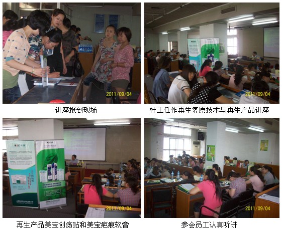 2011年9月4日應(yīng)連云港市康濟大藥房連鎖公司的邀請中國中西醫(yī)結(jié)合學(xué)會燒傷專業(yè)委員會委員、北京美寶燒傷創(chuàng)瘍研究所臨床部杜福勤主任與學(xué)會駐江蘇辦事處劉恒主任、周銀梅同志在該公司大會議室作再生復(fù)原技術(shù)及再生產(chǎn)品講座,講座由公司管理部莊華主任主持,參會的有全市連鎖藥房,70余名員工參與了講座學(xué)習。