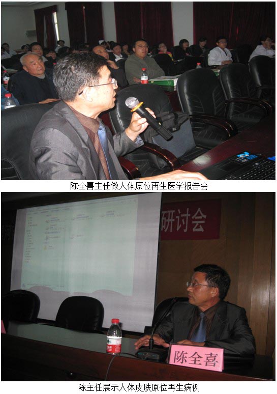2011年9月26日下午2點(diǎn)整,講座在該院外科學(xué)術(shù)廳舉行,該醫(yī)院外科主任,省中西醫(yī)結(jié)合學(xué)會(huì)、燒傷專業(yè)委員會(huì)副主任委員王秉真、漯河市中心醫(yī)院外科主任錢紅軍主持了學(xué)術(shù)講座,在學(xué)術(shù)講座中,陳主任首先向參會(huì)全體醫(yī)護(hù)人員介紹了我國(guó)著名生命科學(xué)家徐榮祥教授。然后結(jié)合大量的臨床病例圖片,主要針對(duì)不同程度的燒傷后期創(chuàng)面及各類難愈性創(chuàng)傷、潰瘍、壓瘡、疤痕等疾病的預(yù)防及治療方法和注意事項(xiàng)。對(duì)創(chuàng)傷性骨病“慢性骨髓炎”的臨床治療也進(jìn)行了認(rèn)真細(xì)致地講解,并解答了醫(yī)師在處理骨髓炎中遇到的疑難問(wèn)題;向?qū)W員們講解微粒皮種植術(shù)在創(chuàng)傷、燒傷、潰瘍創(chuàng)面與濕潤(rùn)燒傷膏聯(lián)合治療的病例,展示了種植皮漿的圖像資料,認(rèn)真解答了醫(yī)護(hù)人員提出的問(wèn)題。