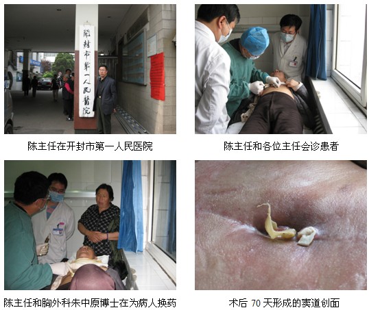中國中西醫(yī)結(jié)合學會燒傷專業(yè)委員會委員、北京美寶燒傷創(chuàng)瘍研究所臨床部技術推廣專家陳全喜主任在2011年4月26日應開封市第一人民醫(yī)院業(yè)務副院長、大外科主任李華強主任醫(yī)師的邀請,會診心胸外科病區(qū)心臟冠狀動脈搭橋術后刀口不愈合的1例病人。陳全喜主任會診后,給患者應用皮膚原位再生醫(yī)療技術治療,獲得了較為滿意的療效。