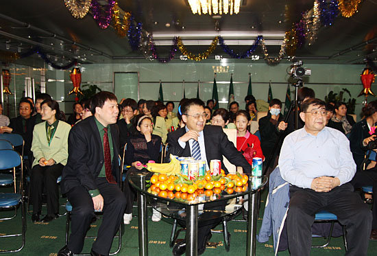 2009年1月19日下午,美寶國際集團2009年新春聯(lián)歡會在北京總部多功能廳成功舉辦。在歡樂祥和的氣氛中,美寶國際集團駐北京的人員齊聚總部多功能廳,俱樂部人員的時裝表演拉開了聯(lián)歡會的序幕,美輪美奐的模特與時裝讓人眼睛一亮;國際部的獨唱震驚全場,引來一片驚呼。各種小游戲連連不斷,換來一陣接一陣的笑聲;充滿感情的詩朗誦讓大家沉浸在對未來的憧憬之中;俱樂部的古裝小品用滑稽地化妝和詼諧的詞語引爆聯(lián)歡會全場的笑聲;聯(lián)歡會高潮迭起,最后美寶集團董事局主席徐榮祥教授上臺表演節(jié)目時說: