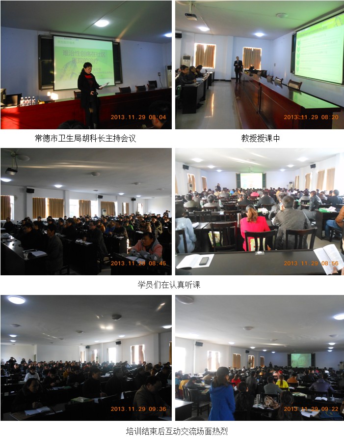 2013年11月29日中國(guó)中西醫(yī)結(jié)合學(xué)會(huì)燒傷專業(yè)委員會(huì)常委、北京燒傷創(chuàng)瘍研究所副所長(zhǎng)、《中國(guó)燒傷創(chuàng)瘍雜志》常委編委金黨軍教授,應(yīng)邀來到美麗的常德市。常德市衛(wèi)生局組織了常德市區(qū)、臨澧縣、漢壽縣、津市、石門縣、桃源縣、澧縣各鄉(xiāng)鎮(zhèn)衛(wèi)生院及社區(qū)醫(yī)院骨干醫(yī)生進(jìn)行適用醫(yī)療技術(shù)培訓(xùn)班!參加培訓(xùn)的單位及人員達(dá)到200人!金黨軍教授在常德市警官培訓(xùn)學(xué)校的會(huì)議室對(duì)參會(huì)的200人進(jìn)行了皮膚原位再生醫(yī)療技術(shù)在治療難愈性創(chuàng)面領(lǐng)域的培訓(xùn)。金教授講到 “人體再生復(fù)原科學(xué)”是中國(guó)生命科學(xué)家徐榮祥教授創(chuàng)立的,而皮膚原位再生醫(yī)療技術(shù)在臨床已成為一項(xiàng)成熟的國(guó)際性技術(shù),用于治療各類燒傷創(chuàng)面、皮膚潰瘍創(chuàng)面、糖尿病壞死足創(chuàng)面、周圍血管病創(chuàng)面、動(dòng)脈閉塞癥、血管狹隘性的誘發(fā)的創(chuàng)面、各種難愈合性創(chuàng)面、斷指創(chuàng)面、擠壓創(chuàng)面和外傷感染性創(chuàng)面、新鮮創(chuàng)傷創(chuàng)面等。金黨軍教授深入淺出的理論演講,大量真實(shí)病例圖片的療效展示取得了很好的現(xiàn)場(chǎng)效果,聽課的醫(yī)師被人體皮膚原位再生醫(yī)療技術(shù)所震驚。