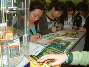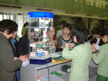 上午八時(shí),隨著上班高峰的來(lái)臨,匆匆而過(guò)的上班族被再生養(yǎng)生營(yíng)銷集團(tuán)的展臺(tái)深深吸引,紛紛駐足,進(jìn)行咨詢。一時(shí)間,整個(gè)大廳里人聲鼎沸,有的先來(lái)者趴在展臺(tái)上,認(rèn)真填寫(xiě)問(wèn)卷調(diào)查表,同時(shí)向再生健康咨詢員詢問(wèn)一些有關(guān)胃腸的健康問(wèn)題;有的性急者看到展臺(tái)由于人多沒(méi)地方填寫(xiě)調(diào)查表,就干脆以同伴的后背為墊板開(kāi)始填寫(xiě);有的圍在旋轉(zhuǎn)產(chǎn)品展臺(tái)前觀看產(chǎn)品,興奮的討論、咨詢。有幾個(gè)年齡大點(diǎn)的客戶不只自己咨詢胃腸健康問(wèn)題,還把同伴介紹過(guò)來(lái)詢問(wèn),再生養(yǎng)生營(yíng)銷集團(tuán)的一線人員熱情地給予了解答。