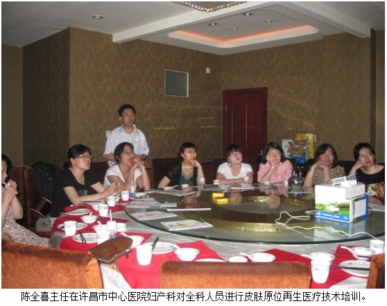 晚六點(diǎn),在許昌市中心醫(yī)院婦產(chǎn)科小會(huì)議室,陳全喜主任對(duì)婦產(chǎn)科全體醫(yī)護(hù)人員進(jìn)行了皮膚再生技術(shù)的系統(tǒng)培訓(xùn)。