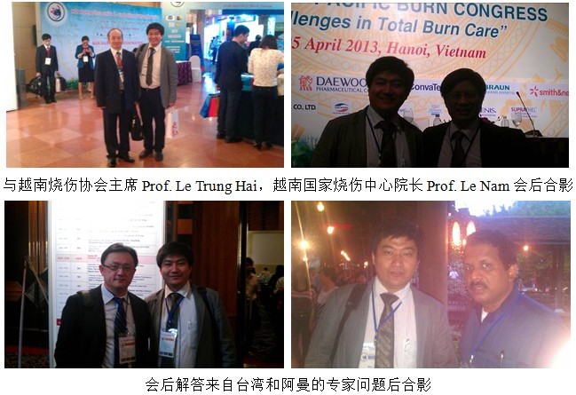 會(huì)后,舒葉向來自臺(tái)灣、捷克、阿曼、越南、韓國等國家和地區(qū)的專家們回答他們的問題,得到了專家們的贊揚(yáng)。來自中國臺(tái)灣國立成功大學(xué)附屬醫(yī)學(xué)院的Dr.何建良感慨:上一屆亞太會(huì)議就看到美寶組織了那么大的一次活動(dòng),這次仍然能聽到來自中華民族的聲音真是所有華夏兒女的驕傲和自豪;作為會(huì)議主持人之一,來自越南國家燒傷中心院長Prof. Le Nam會(huì)后不停地夸贊:好技術(shù),好產(chǎn)品......;來自阿曼的專家追問想了解更多更詳細(xì)的使用再生醫(yī)學(xué)技術(shù)方法,并表示在中東地區(qū)美寶已經(jīng)是大多醫(yī)生和患者的首選;來自捷克斯洛伐克,布拉德軍隊(duì)中心醫(yī)院教授Prof. Michaela Prokesova對再生醫(yī)學(xué)表示極大的興趣,更急切要求得到更多關(guān)于再生醫(yī)學(xué)的信息和最新進(jìn)展。舒葉都一一做出答復(fù),并表示將于他們保持積極有效的聯(lián)系,利用資源,為他們解決一切在使用再生醫(yī)療技術(shù)過程中的問題。