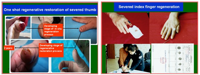 在臨床實(shí)踐中,我們用再生物質(zhì)已經(jīng)啟動(dòng)了皮膚等多器官組織缺損的再生復(fù)原,所以用再生物質(zhì)也能啟動(dòng)和培養(yǎng)各器官的再生,這就又形成了新的生命定律。
