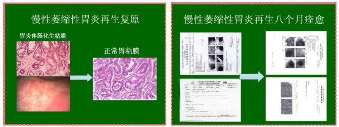 慢性萎縮性胃炎是胃黏膜細(xì)胞的變異,而我們能在一年之內(nèi)把慢性萎縮性胃炎原位再生復(fù)原,如果人的胃器官患有頑疾后能原位再生復(fù)原,那么人體各器官的器質(zhì)性病變也都能原位再生復(fù)原。這就形成了器官頑疾被治愈的再生生命定律。
