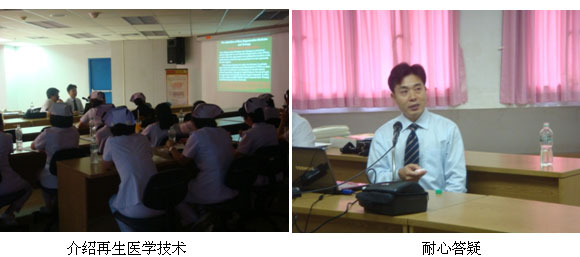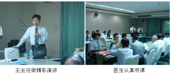 3月1日,我們應(yīng)邀前往位于曼谷市大型私立醫(yī)院Ramkumhang Hospital進行全新的醫(yī)療開發(fā)工作。聽課醫(yī)生分別來自外科,內(nèi)科及整形外科,王洪生主任以再生醫(yī)療技術(shù)的臨床應(yīng)用為主題,生動地向聽課人員展示了再生醫(yī)學(xué)在燒傷、創(chuàng)瘍等多領(lǐng)域的臨床應(yīng)用,圖文并茂,醫(yī)生們認(rèn)真聽講,對MEBT/MEBO興趣較大。會后兩名重點醫(yī)生跟王主任就微粒皮種植術(shù)進行進一步交流,王主任針對問題都給與了耐心而專業(yè)的解答。
