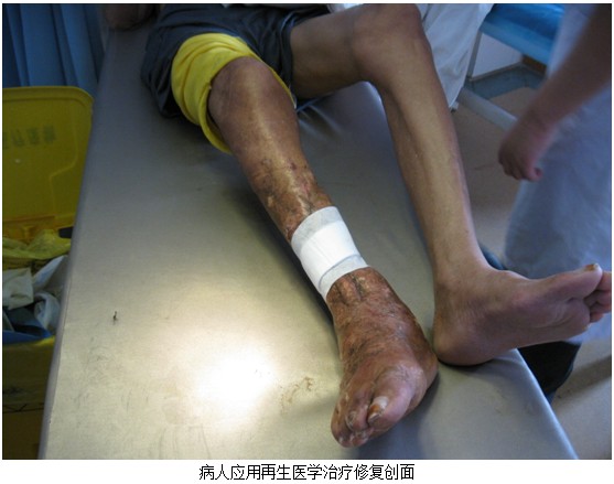 會診結(jié)果:清創(chuàng)外露骨質(zhì),應(yīng)用皮膚原位再生醫(yī)療技術(shù)治療。