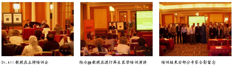 二、2009年10月15日晚上9時,在迪拜市成功舉辦了燒傷創(chuàng)瘍再生醫(yī)學治療新進展培訓班,參加培訓班的有來自迪拜市各主要醫(yī)院的燒傷、整形、普外、創(chuàng)傷、急診、皮膚和婦產科的主任和骨干醫(yī)師,共計50余人。培訓班由阿聯酋醫(yī)師學會和燒傷整形學會主席、迪拜醫(yī)學院碩士研究生導師Dr.Ali教授主持,會議持續(xù)了2個多小時,培訓活動很成功,會場氣氛非常熱烈。