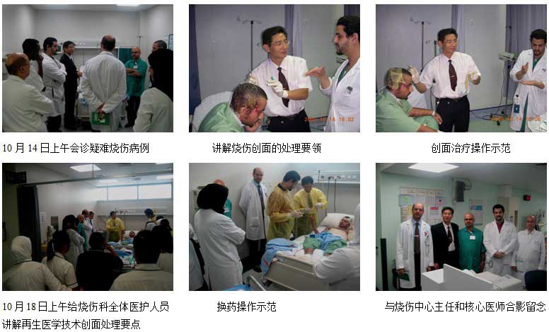 三、2009年10月14日下午和18日上午,陳永翀先后2次應邀到迪拜最大的醫(yī)院Dubai Rashid Hospital的燒傷創(chuàng)傷中心(該中心是阿聯酋最大的創(chuàng)傷救治中心),會診指導燒傷患者的治療和示范燒傷再生醫(yī)學技術的規(guī)范創(chuàng)面處理技術,通過會診、病例討論和操作示范,使燒傷中心的醫(yī)師、護士更全面的掌握燒傷再生醫(yī)學技術,收效顯著,效果很好。