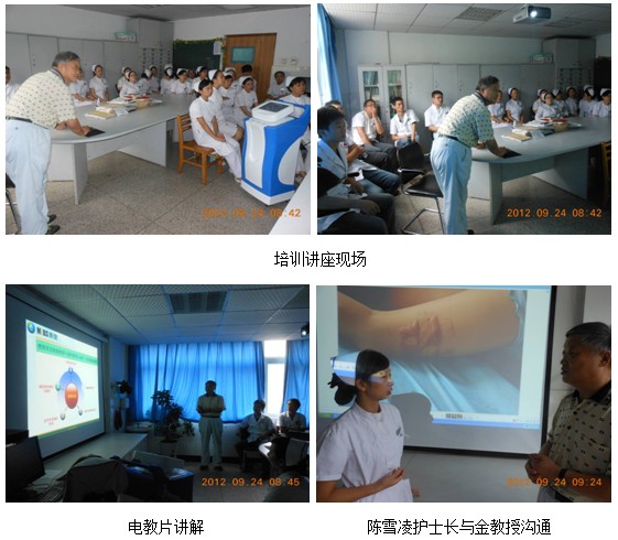 早上八點三十分,金教授在三峽大學(xué)仁和醫(yī)院手外整形科,通過電教片闡述了皮膚原位再生復(fù)原技術(shù)在防疤、治疤、美容方面的適應(yīng)癥,治療理念和祛疤機理。結(jié)合臨床治療病例圖片,金教授還重點講解了再生產(chǎn)品美寶疤痕軟膏結(jié)合美寶疤痕導(dǎo)入儀的使用方法和注意事項,并操作了導(dǎo)入儀器。得知金教授再次在該科室講座,科室戴黎明主任特意把周一早上學(xué)習(xí)時間安排出來,陳雪凌護士長也拍取了一位學(xué)生的瘢痕圖片,向金教授虛心溝通治療方案。講座結(jié)束后,關(guān)于日常瘢痕治療和儀器使用細節(jié)問題護士們紛紛同教授進行了課后互動。