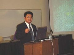 (左圖為黃新凡醫(yī)學(xué)博士發(fā)言)定于7:30開會(huì)的禮堂內(nèi)外,六點(diǎn)多便陸陸續(xù)續(xù)來(lái)了許多人,有的手里還拿著他自己打印好的“美寶網(wǎng)站”上的很多資料;有的見(jiàn)到徐教授時(shí)興奮的說(shuō):“我早就關(guān)注您的事業(yè),今天能有機(jī)會(huì)在這里見(jiàn)面,真的是幸會(huì)!”也有人對(duì)徐教授的年輕感到驚訝:“沒(méi)想到您這么年輕有為!”……會(huì)前便有如此熱烈的場(chǎng)面讓我們有點(diǎn)始料不及,這更證明了徐榮祥教授及他的“組織器官原位或體外再生復(fù)制”的理論和成就之影響的深遠(yuǎn)。 會(huì)議在熱烈的氣氛中開始,由具有生物學(xué)和法學(xué)雙博士學(xué)位的律師Shirley Chen博士主持,她既是分子生物學(xué)專家,又是美寶在美的專利律師。會(huì)議首先由1988年第一批“美寶濕性燒傷療法”學(xué)員,現(xiàn)在美國(guó)的創(chuàng)面愈合專家黃新凡醫(yī)學(xué)博士向與會(huì)的朋友們簡(jiǎn)略介紹徐教授在燒傷及生命科學(xué)領(lǐng)域所走過(guò)的不平凡的歷程。