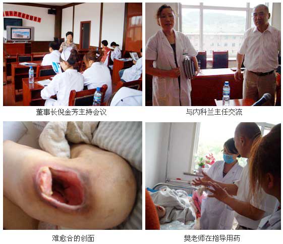 2011年7月10日下午,中國(guó)中西醫(yī)結(jié)合學(xué)會(huì)燒傷專業(yè)委員會(huì)的樊兆宗教授在喬巍的陪同下,來到了該醫(yī)院。對(duì)該院的外科、內(nèi)科急診科、老年病房的20多名醫(yī)護(hù)人員進(jìn)行了再生醫(yī)療技術(shù)的普及推廣工作,在培訓(xùn)中樊教授有針對(duì)性的對(duì)該院的特色科室老年病房中接收的褥瘡、糖尿病潰瘍患者的創(chuàng)面處理進(jìn)行了重點(diǎn)講解,指出了一定要規(guī)范用藥,保護(hù)好創(chuàng)面殘留的潛能再生細(xì)胞的重要性。學(xué)員們都能認(rèn)真的聽課并記錄筆記。