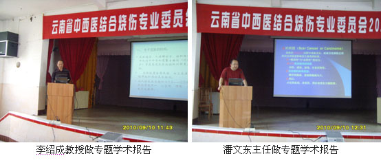 會(huì)議期間,云南省中西醫(yī)結(jié)合學(xué)會(huì)燒傷專委會(huì)主委、昆明醫(yī)學(xué)院第二附屬醫(yī)院李紹成教授、開遠(yuǎn)59解放軍中心醫(yī)院燒傷整形科主任潘文東副主任醫(yī)師、云南大里祥云縣人民醫(yī)院外科主任李紹昌主任醫(yī)師等專家分別以“燒傷診斷與治療中的諸多問題之我見”、“疤痕癌的防治”、“壓力性潰瘍防治新進(jìn)展”等課題進(jìn)行了大會(huì)專題學(xué)術(shù)講座和學(xué)術(shù)交流。
