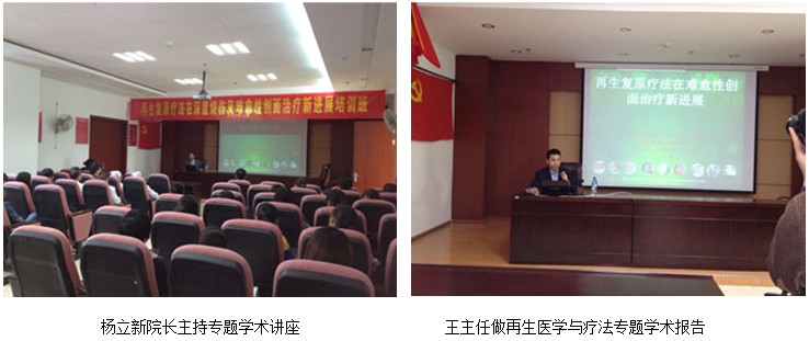 2012年11月16日下午應(yīng)該院楊立新院長的邀請, 中國中西醫(yī)結(jié)合學(xué)會燒傷專業(yè)委員會常委兼秘書、《中國燒傷創(chuàng)瘍雜志》副總編輯、北京美寶燒傷創(chuàng)瘍研究所副所長、臨床研究部主任王洪生研究員來到該院,對該院醫(yī)護(hù)人員進(jìn)行再生復(fù)原療法在深度燒傷及難愈性創(chuàng)面和各種潰瘍治療新進(jìn)展的規(guī)范性培訓(xùn)及學(xué)術(shù)交流。王主任結(jié)合大量真實的臨床病例圖片,就再生復(fù)原療法在難愈性創(chuàng)瘍創(chuàng)面治療上的一種新方法,對不同深度的燒傷創(chuàng)面及各類難愈性創(chuàng)傷、潰瘍創(chuàng)面的規(guī)范化處理方法與技巧、注意事項等進(jìn)行了細(xì)致的講解,強調(diào)創(chuàng)面處理要大膽清創(chuàng)、減壓、去除壞死組織,并保持創(chuàng)面生理的濕潤環(huán)境,實現(xiàn)創(chuàng)面的再生復(fù)原。會后外科的醫(yī)生就高壓電燒傷顱骨開窗等系列問題請教了王主任,并一一作答。