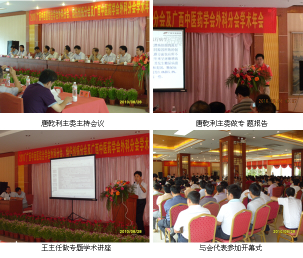 2010年8月27日~29日,由廣西中西醫(yī)結(jié)合學(xué)會(huì)、廣西中醫(yī)藥學(xué)會(huì)、廣西中醫(yī)學(xué)院共同舉辦,欽州市中醫(yī)院承辦的“2010年廣西中西醫(yī)結(jié)合外科分會(huì)、燒傷創(chuàng)瘍分會(huì)、廣西中醫(yī)藥學(xué)會(huì)外科分會(huì)換屆工作會(huì)議暨廣西中西醫(yī)結(jié)合外科、燒傷創(chuàng)瘍理論與臨床應(yīng)用學(xué)術(shù)年會(huì)”在美麗的海濱城市欽州市海豚大酒店隆重召開(kāi)。以中西醫(yī)結(jié)合外科、燒傷創(chuàng)瘍學(xué)科發(fā)展各種診療新技術(shù)、新方法為主題,本次會(huì)議總結(jié)并肯定了近年來(lái)中西結(jié)合外科、燒傷創(chuàng)瘍外科、中醫(yī)外科的發(fā)展成果,尤其是廣西自治區(qū)在燒傷濕性醫(yī)療技術(shù)的推廣應(yīng)用,中西醫(yī)結(jié)合治療外科危急重癥,乳腺癌早期診斷,顱腦外科及肝膽外科等專(zhuān)科技術(shù)方面成績(jī)顯著。會(huì)議還研究了新時(shí)期新的歷史條件下外科各學(xué)科的發(fā)展任務(wù),討論了如何促進(jìn)各學(xué)科的更好更快的發(fā)展。