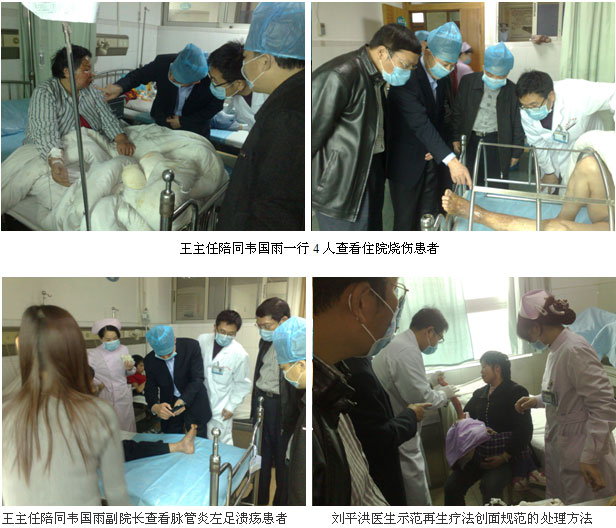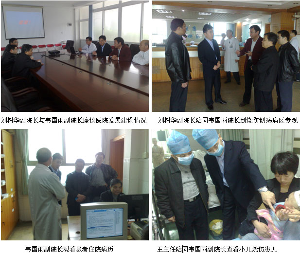 2011年3月21日上午9時(shí)30分,桂平市中醫(yī)院的韋國(guó)雨副院長(zhǎng)、大骨科主任黎小琳副主任醫(yī)師、大外科主任黎海副主任醫(yī)師等4人在王洪生主任陪同下來(lái)到廣州市中西醫(yī)結(jié)合醫(yī)院參觀交流,廣州市中西醫(yī)結(jié)合醫(yī)院主管副院長(zhǎng)劉樹華副主任醫(yī)師、大外科主任張向東副主任醫(yī)師親自到醫(yī)院大門迎接。韋國(guó)雨一行首先在劉樹華副院長(zhǎng)及張向東主任的陪同下來(lái)到該醫(yī)院住院大樓6樓燒傷創(chuàng)瘍科參觀,主治醫(yī)師劉平洪帶領(lǐng)大家深入燒傷創(chuàng)瘍病房,查看正在該科住院的燒傷、脈管炎合并下肢潰瘍、褥瘡、糖尿病足等患者,并親自為患者換藥示范皮膚原位再生復(fù)原醫(yī)療技術(shù)規(guī)范的創(chuàng)面處理技術(shù)。查房結(jié)束后,韋國(guó)雨副院長(zhǎng)一行又來(lái)到該院門診四樓小會(huì)議室,進(jìn)行座談交流,在座談會(huì)上,首先劉樹華副院長(zhǎng)介紹了該院的整體發(fā)展情況,隨后劉平洪主治醫(yī)師著重介紹了這幾年運(yùn)用皮膚原位再生復(fù)原醫(yī)療技術(shù)治療大面積深度燒傷及糖尿病足等難愈性創(chuàng)面典型臨床病例資料。在座談會(huì)結(jié)束后,韋國(guó)雨副院長(zhǎng)對(duì)劉樹華副院長(zhǎng)地?zé)崆榻哟硎玖酥孕母兄x,他說(shuō),我們廣東、廣西同飲一江水,希望以后進(jìn)一步加強(qiáng)兩院之間的交流,以增進(jìn)友誼,相互學(xué)習(xí),相互借鑒好的技術(shù),共同發(fā)展,共同提高。