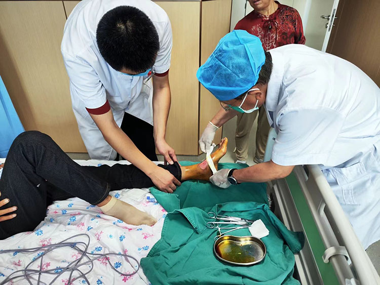 2025年8月28日,《中國(guó)燒傷創(chuàng)瘍雜志》編委、燒傷創(chuàng)瘍?cè)偕t(yī)療技術(shù)臨床專(zhuān)家張強(qiáng)教授應(yīng)邀來(lái)到岳西縣人民醫(yī)院外三科,與醫(yī)護(hù)人員進(jìn)行再生醫(yī)療技術(shù)在創(chuàng)瘍中的應(yīng)用為題的學(xué)術(shù)交流,交流后對(duì)病區(qū)內(nèi)的創(chuàng)面患者進(jìn)行了會(huì)診,張主任親自示范再生醫(yī)療技術(shù)規(guī)范換藥,受到醫(yī)患雙方的一致好評(píng)!