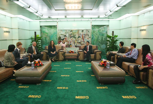 2012年5月19日,中國(guó)北京美寶國(guó)際集團(tuán)總部,美國(guó)南加州大學(xué)戴維斯老年學(xué)學(xué)院副院長(zhǎng)、美國(guó)南加州老年學(xué)和老年病學(xué)委員會(huì)主席瑪麗亞•亨克女士(Maria Henkev),與該校名譽(yù)院長(zhǎng)、醫(yī)學(xué)教授、洛杉磯猶太老年護(hù)理中心特別項(xiàng)目高級(jí)顧問(wèn)愛(ài)德華•施奈德(Edward Schneider)、學(xué)院咨詢科技主管May NG女士等一行蒞臨,專程拜訪中國(guó)生命科學(xué)家、人體再生復(fù)原科學(xué)創(chuàng)始人、美寶國(guó)際集團(tuán)董事局主席徐榮祥教授,這是一次中美老年學(xué)研究領(lǐng)域的高端正式交流會(huì)晤。