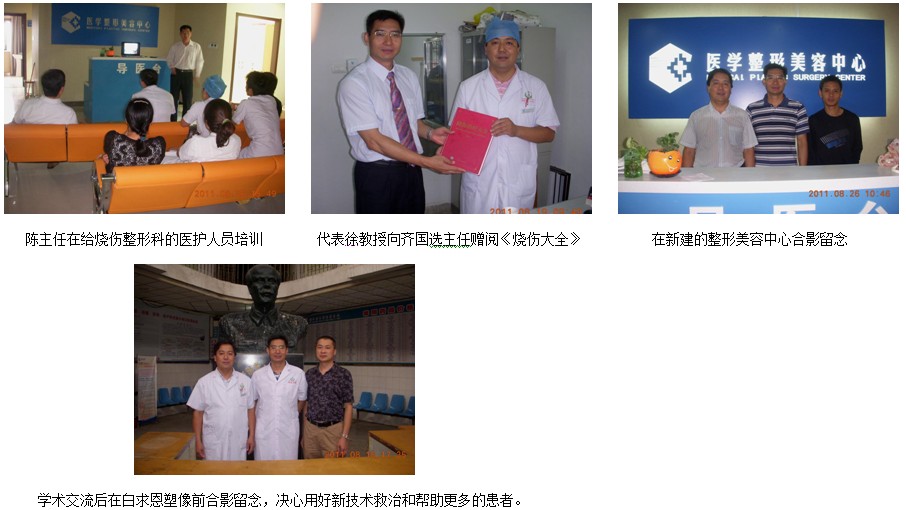 今年8月,應醫(yī)院燒傷整形科齊國選主任的邀請,中國燒傷創(chuàng)瘍科技中心臨床部主任、北京中西醫(yī)結合學會燒傷專業(yè)委員會副主任委員、國際燒傷外科學會會員陳永翀主任在中國中西醫(yī)結合學會燒傷專業(yè)委員會安徽辦事處張朝軍主任和吳崇偉老師的陪同下,先后2次到該院進行學術交流、技術培訓和指導搶救大面積特重度燒傷和創(chuàng)瘍患者。通過這次學術交流和討論,大家對再生醫(yī)學有了更深入的了解和掌握,對再生醫(yī)學的臨床療效有了更深刻的認識,在應用再生醫(yī)學救治大面積特重度燒傷方面取得了長足的進步,齊國選主任和他帶領的團隊在再生醫(yī)學新技術的臨床應用上已經(jīng)達到了安徽省內(nèi)領先水平。 現(xiàn)將這次學術交流和臨床救治患者的情況介紹如下: