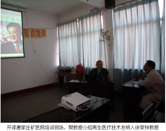 2012年11月1日下午,樊教授應(yīng)邀來(lái)到唐山市遷西縣中醫(yī)院進(jìn)行再生醫(yī)療技術(shù)的院內(nèi)培訓(xùn),50多該院醫(yī)護(hù)人員接受了培訓(xùn);2012年11月6日下午,樊教授應(yīng)邀來(lái)到了唐山市古冶區(qū)開灤唐家莊礦醫(yī)院進(jìn)行再生醫(yī)療技術(shù)的培訓(xùn),開灤唐家莊礦醫(yī)院是開灤醫(yī)療集團(tuán)下屬的一個(gè)二甲醫(yī)院,參加培訓(xùn)的醫(yī)護(hù)人員有70人次;2012年11月7日下午,樊教授應(yīng)邀來(lái)到豐潤(rùn)區(qū)人民醫(yī)院進(jìn)行再生醫(yī)療技術(shù)的院內(nèi)培訓(xùn),豐潤(rùn)區(qū)人民醫(yī)院是當(dāng)?shù)匾?guī)模最大,最具影響力的二甲醫(yī)院,參加培訓(xùn)的醫(yī)護(hù)人員有70人次;2012年11月8日下午,樊教授應(yīng)邀來(lái)到秦皇島市骨科醫(yī)院開展再生醫(yī)療技術(shù)的院內(nèi)培訓(xùn),秦皇島市骨科醫(yī)院是秦皇島市唯一一家市級(jí)??漆t(yī)院,對(duì)骨科,骨傷,外傷的治療方面有相當(dāng)?shù)穆曌u(yù)。參加培訓(xùn)的醫(yī)護(hù)人員有40人次。