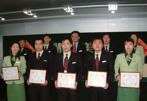 2月7日上午市場板塊會議進(jìn)行表彰工作,由陳寶琪董事宣讀了集團(tuán)董事局關(guān)于授予李德喜等五位同志為“美寶紳士”榮譽(yù)稱號的決定。這是集團(tuán)實行“美寶紳士”年度評審制度后的首次任命。李德喜、李春鳳、王洪生、汪波、彭韶軍等五位同志由董事局主席徐榮祥教授頒發(fā)獎牌。徐總號召大家向美寶紳士學(xué)習(xí),弘揚(yáng)汪波、李春鳳的精神,今后各系統(tǒng)都要實行紳士年度評審制,為集團(tuán)的發(fā)展作出突出貢獻(xiàn)的人員是集團(tuán)全體員工的榜樣。