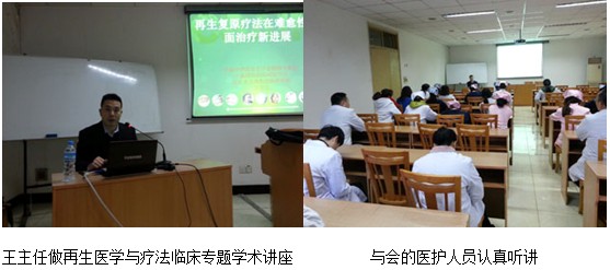 2012年11月27日,中國中西醫(yī)結(jié)合學(xué)會燒傷專業(yè)委員會常務(wù)兼秘書、《中國燒傷創(chuàng)瘍雜志》副總編輯、北京美寶燒傷創(chuàng)瘍研究所副所長、第二臨床研究部主任王洪生研究員應(yīng)重慶市江陵醫(yī)院的邀請來到該院,為全院醫(yī)護人員做了一場精彩的學(xué)術(shù)講座。聽取此次學(xué)術(shù)講座的有該院泌尿外科、肛腸外科、骨科、腦外科、胸外科、婦產(chǎn)科、皮膚科、口腔科、五官科、精神科等科室近60余人參加。下午3點培訓(xùn)會準(zhǔn)時開始,王主任以“再生復(fù)原療法在難愈性創(chuàng)面治療新進展”為題做了精彩的學(xué)術(shù)報告,全面講解了再生醫(yī)學(xué)的相關(guān)概念,并結(jié)合大量的病例圖片講解了再生醫(yī)療技術(shù)骨外露、鋼板外露、糖尿病足、褥瘡等各種難愈合創(chuàng)面的治療過程及要點,講解了再生醫(yī)療技術(shù)在各個臨床科室的應(yīng)用。此場報告深深的震撼了在場的每一位醫(yī)護人員,會議結(jié)束后,大家還不愿離去,爭先恐后的提問,王洪生研究員都一一解答。