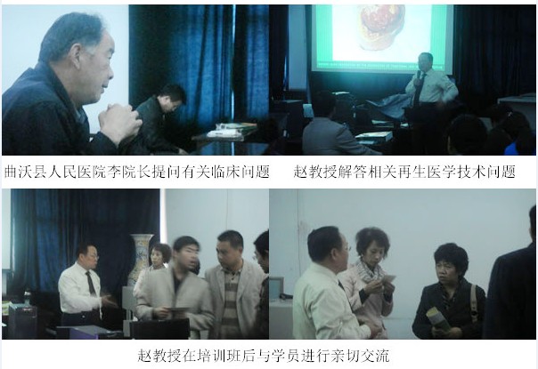 趙瑞慶教授講授的主題為“再生醫(yī)學(xué)新技術(shù)與臨床外科四癥”。以圖文并茂生動(dòng)的講課形式,重點(diǎn)講解了急性外傷、壓瘡、糖尿病足、下肢靜脈曲張潰瘍傷口的愈合過(guò)程,受到了與會(huì)醫(yī)務(wù)人員的高度稱贊。會(huì)后認(rèn)真細(xì)致地回答了諸多醫(yī)務(wù)人員提出的各類(lèi)臨床問(wèn)題。培訓(xùn)會(huì)上發(fā)放教材102份,參加培訓(xùn)的人員為急診外科、婦科、骨科、內(nèi)科以及縣中醫(yī)院周邊中心衛(wèi)生院102人。