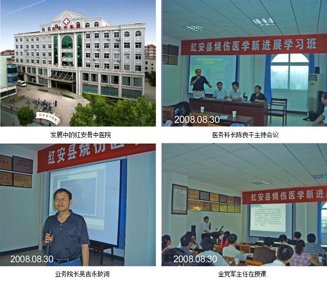 2008年8月30日 有中國中西醫(yī)結(jié)合學(xué)會燒傷專業(yè)委員會主辦,紅安縣衛(wèi)生局、紅安縣中醫(yī)院承辦“再生醫(yī)療技術(shù)新進(jìn)展學(xué)習(xí)班”在中醫(yī)院學(xué)術(shù)廳拉開帷幕。紅安縣地處鄂、豫、皖三省交界。是革命老區(qū),著名的將軍縣,這次學(xué)術(shù)活動得到縣衛(wèi)生局李汝才局長、醫(yī)政股長袁波、中醫(yī)院院長李長樂、等領(lǐng)導(dǎo)的大力支持。并對燒傷皮膚原位再生醫(yī)療技術(shù)在多學(xué)科的應(yīng)用前景,和專家無償?shù)貙鶎俞t(yī)生進(jìn)行技術(shù)指導(dǎo)培訓(xùn),給與高度地評價。29—30日雖然連續(xù)兩天持續(xù)強(qiáng)降暴雨但仍有40幾個單位,120多名基層醫(yī)生冒雨前來學(xué)習(xí)。會議有醫(yī)務(wù)科長陳良干主持、業(yè)務(wù)院長吳吉永致詞。