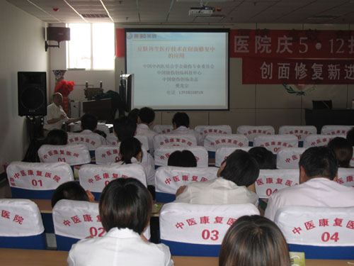 5月18日下午2點(diǎn)30分,中國中西醫(yī)結(jié)合學(xué)會燒傷專業(yè)委員會常委、《中國燒傷創(chuàng)瘍雜志》常務(wù)編委、中國燒傷創(chuàng)瘍科技中心醫(yī)療部主任樊兆宗教授在該院進(jìn)行了燒傷創(chuàng)瘍再生技術(shù)講座,重點(diǎn)講述了原位再生復(fù)原技術(shù)的臨床操作規(guī)范;原位再生復(fù)原技術(shù)在創(chuàng)傷、褥瘡、潰瘍等多學(xué)科的運(yùn)用;并從燒傷創(chuàng)面治療難題的再生復(fù)原機(jī)理、解決深度創(chuàng)面的愈合難題機(jī)理、創(chuàng)傷創(chuàng)面治療難題的再生復(fù)原機(jī)理、糖尿病潰瘍的再生復(fù)原機(jī)理、組織肢體缺損的復(fù)原機(jī)理;再生療法復(fù)原潰瘍和衰老器官、皮膚器官原位再生復(fù)原機(jī)理和效果;胃腸再生復(fù)原的效果等八個(gè)方面對人體器官原位再生復(fù)原技術(shù)的機(jī)理進(jìn)行了深入淺出的講解。