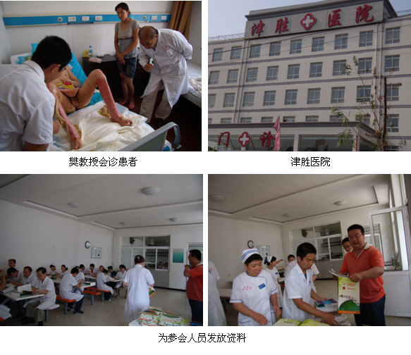 2010年8月2日,中國(guó)中西醫(yī)結(jié)合學(xué)會(huì)燒傷專業(yè)委員會(huì)常委、北京燒傷創(chuàng)瘍研究所副所長(zhǎng)、臨床研究部主任樊兆宗教授應(yīng)津勝醫(yī)院領(lǐng)導(dǎo)的邀請(qǐng),到該醫(yī)院進(jìn)行 “再生醫(yī)療技術(shù)在燒傷創(chuàng)瘍及多科室的應(yīng)用”專題臨床學(xué)術(shù)講座。樊主任結(jié)合了大量的臨床病例圖片,從燒傷的診斷到各類難愈性創(chuàng)傷、潰瘍創(chuàng)面的規(guī)范化處理方法與技巧、注意事項(xiàng)等向與會(huì)的人員進(jìn)行了細(xì)致地講解,博得了與會(huì)人員的一致好評(píng)。會(huì)后,該院陳院長(zhǎng)和燒傷科王少康主任陪同樊教授對(duì)在該科室治療的嚴(yán)重?zé)齻颊哌M(jìn)行了臨床技術(shù)指導(dǎo)。陳院長(zhǎng)表示希望樊教授以后能夠經(jīng)常來(lái)醫(yī)院進(jìn)行技術(shù)指導(dǎo),加強(qiáng)技術(shù)交流,共同造福廣大患者。