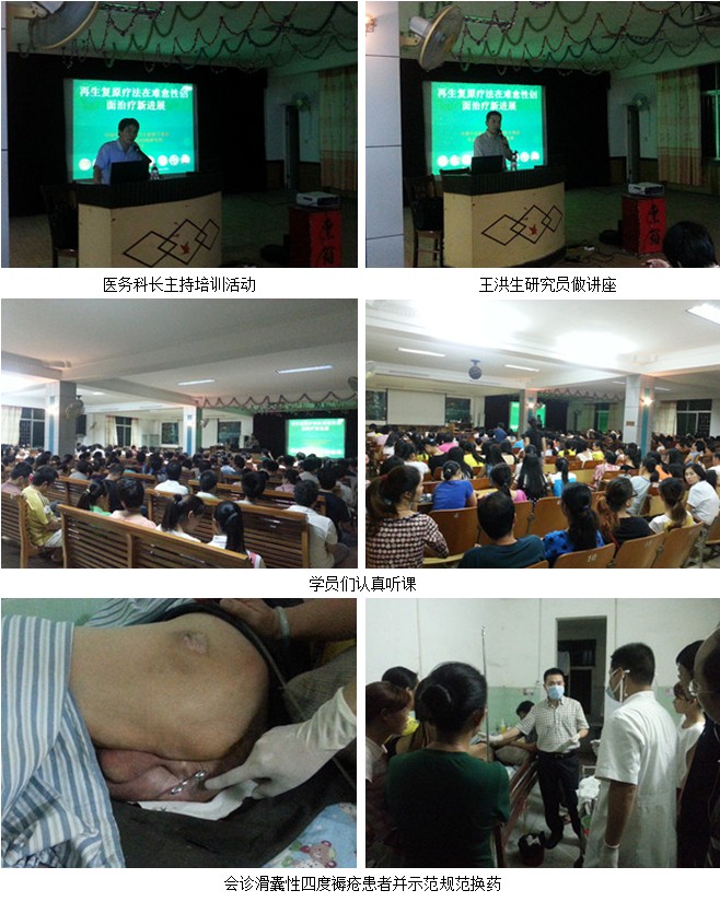 當(dāng)日晚上19時(shí)30分,玉林市第三人民醫(yī)院綜合樓2樓會議室座無虛席,全院各科室除值班醫(yī)護(hù)人員外,共有200多人到會聆聽王主任的專題講座,該醫(yī)院主管副院長主持了學(xué)術(shù)講座,醫(yī)務(wù)科植科長在王主任講座結(jié)束后做了總結(jié)發(fā)言,會議中,王主任首先向與會專家及醫(yī)護(hù)人員介紹了我國著名生命科學(xué)家、醫(yī)學(xué)家、人體再生復(fù)原科學(xué)的創(chuàng)立者、再生醫(yī)療技術(shù)的發(fā)明人徐榮祥教授近期在人體再生復(fù)原科學(xué)及再生醫(yī)學(xué)研究最新進(jìn)展,而后結(jié)合了大量的臨床病例圖片,重點(diǎn)講述了再生復(fù)原療法對骨外露、鋼板外漏、肌腱外露、皮膚軟組織撕脫傷、骨科創(chuàng)瘍、糖尿病足、動脈閉塞癥、褥瘡等深度創(chuàng)面及難愈性創(chuàng)面治療新進(jìn)展及規(guī)范化處理方法與技巧、注意事項(xiàng)等,學(xué)術(shù)講座一直持續(xù)到晚上21時(shí)30分才結(jié)束。